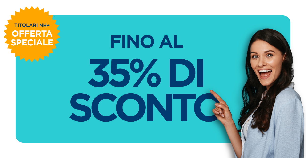 Buone notizie! In qualità di stimato titolare NH+ Business Program ti offriamo uno sconto fino al 35% se prenoti entro la fine dell’anno tramite NH PRO e soggiorni tra il 17 novembre e il 28 marzo 2024.